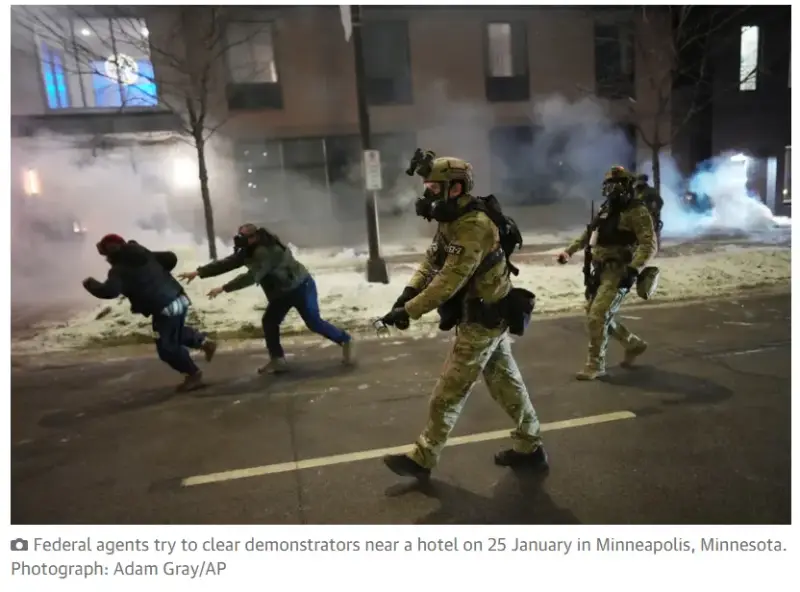 • Guardian report on federal agents and protesters: https://www.theguardian.com/us-news/2026/jan/26/minnesota-minneapolis-ice-hotel-protests